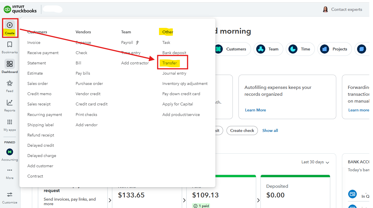 However, if you mean the Transfer button, this is available in the + Create section under the Other column. See screenshot below: