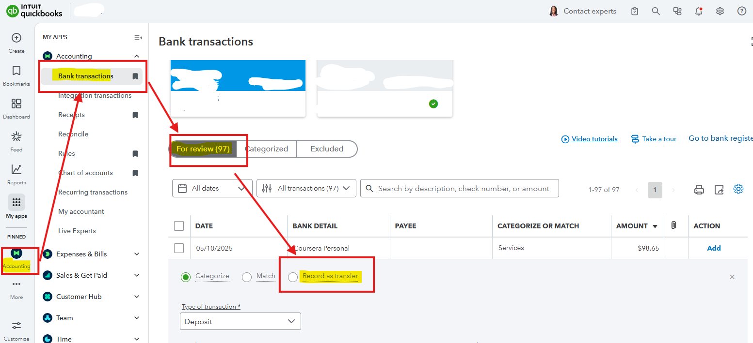 Hello, Admin395. There are two possible options that come to mind. If you mean the Record as transfer option, it's still available in the Bank Transactions section, specifically in the For Review tab.