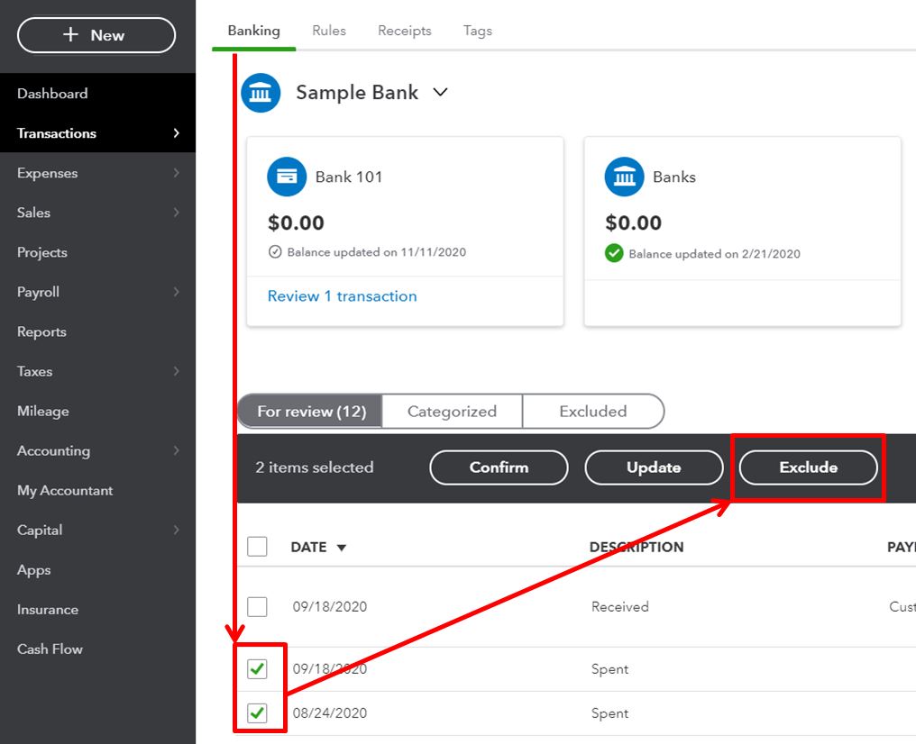 Since your transactions are displayed incorrectly, you'll want to exclude them by following these steps: