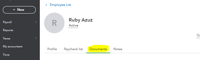 In QuickBooks Online (QBO), your employee can add a PDF attachment in the Documents tab of their profile only when they've been invited to QuickBooks Workforce. Adding attachments to other payroll records in your QBO account is currently unavailable. For reference, check out this article: Add or delete attachments in QuickBooks Online.