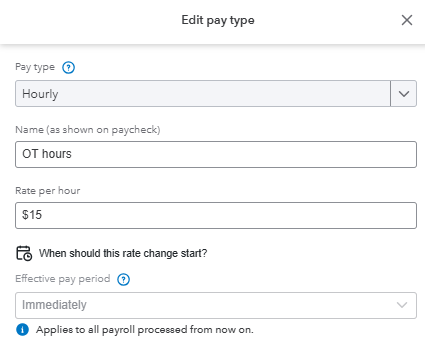 4. Click + Another hourly rate or + New pay type and enter the pay type name if desired.