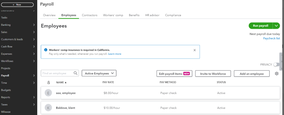 - In your left navigation bar, go to Payroll, then Employees.