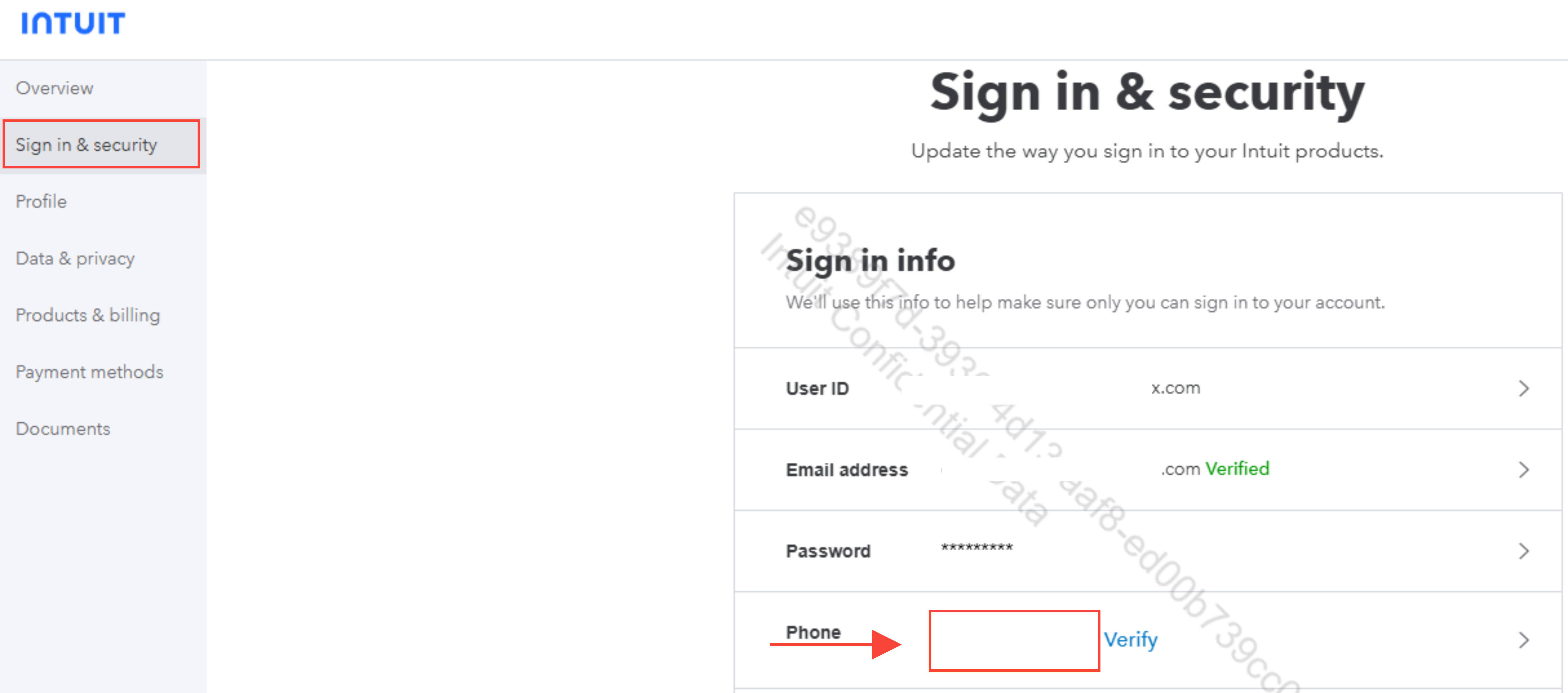 - Click Verify in the Phone section.
