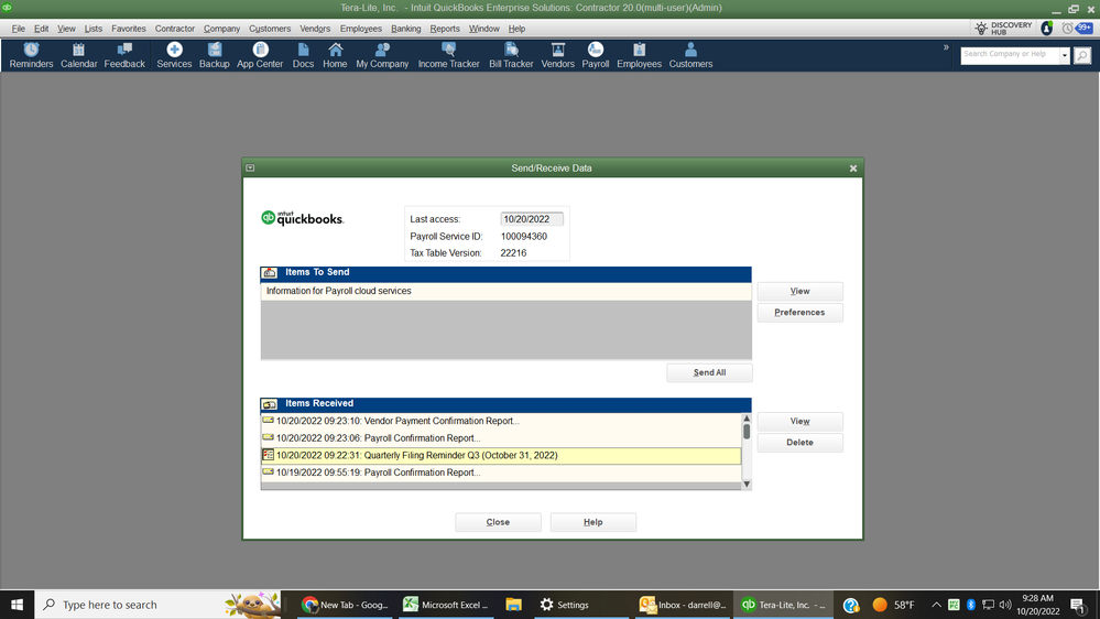 Weird thing but when ever I get a payroll tax update or holiday alert if I open it, and sometimes its not an option,  I can't get it to close.  There seems to be no way to get out of it beside shutting it all down in Task Manager.  Anybody know of a setting I'm missing or work around?  Thanks.