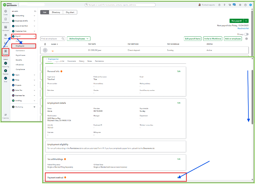 If you'd prefer to switch to Direct Deposit moving forward, update the payment method for each employee in their profile before processing the next payroll.