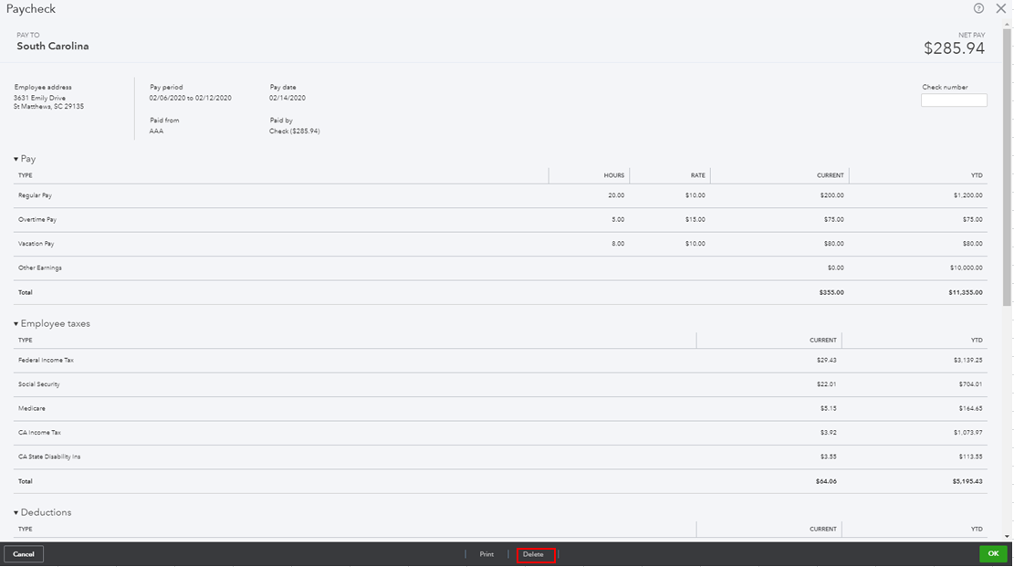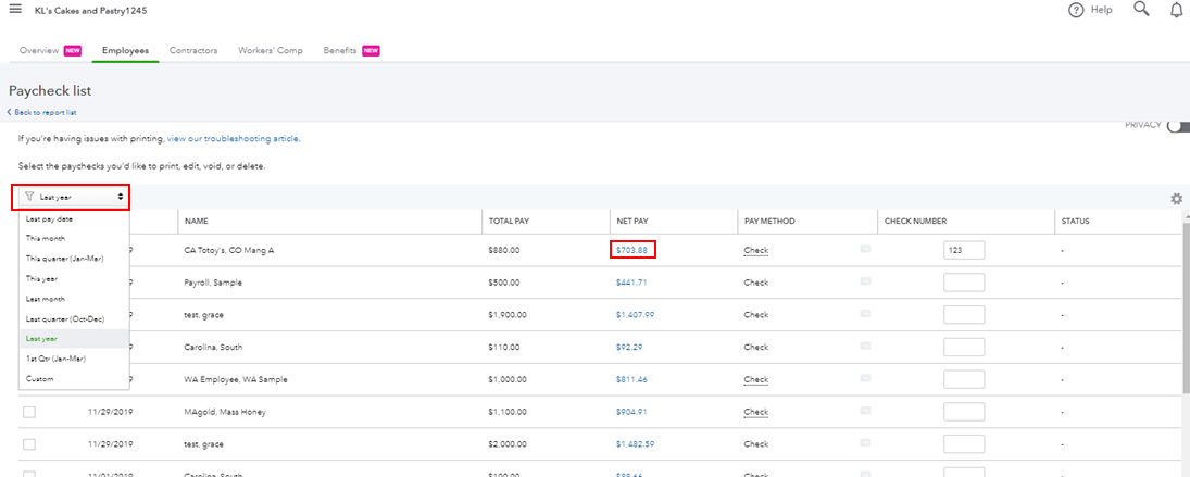If you encounter any challenges in voiding or deleting the paycheck, I recommend contacting our Payroll Support Team. This way, they can help you void or delete the paycheck and recreate it at the same time.