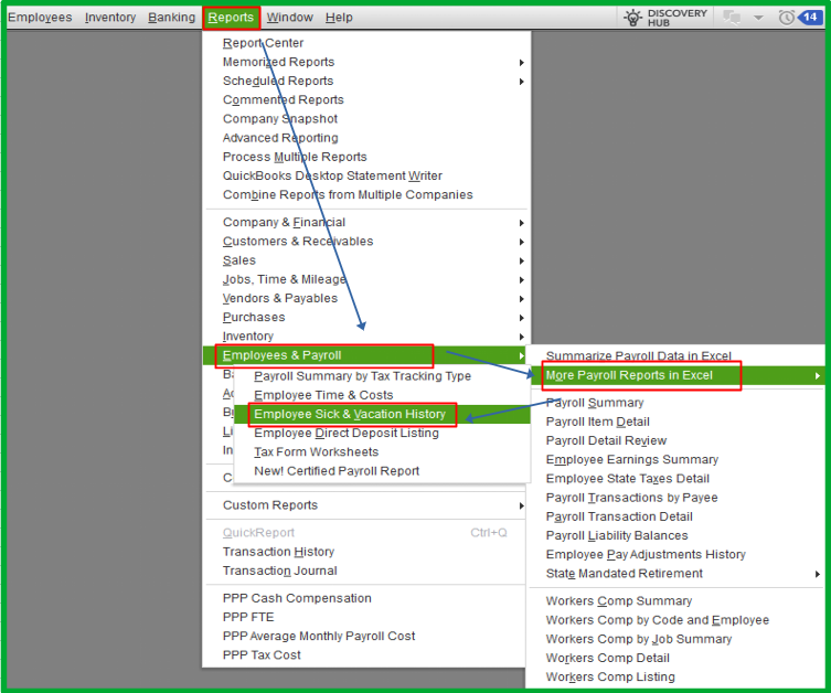 You can generate reports that display hours rather than dollars. This Excel-based report will provide the hour-based data for vacation, sick, and PTO time. Here’s how: