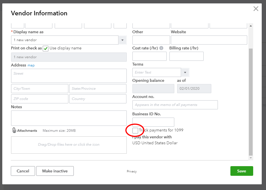 I can help you record this payments in your contractor's 1099s form. First, we need to make sure that the track payments for 1099 box is checked in your contractor's profile. Here's how: