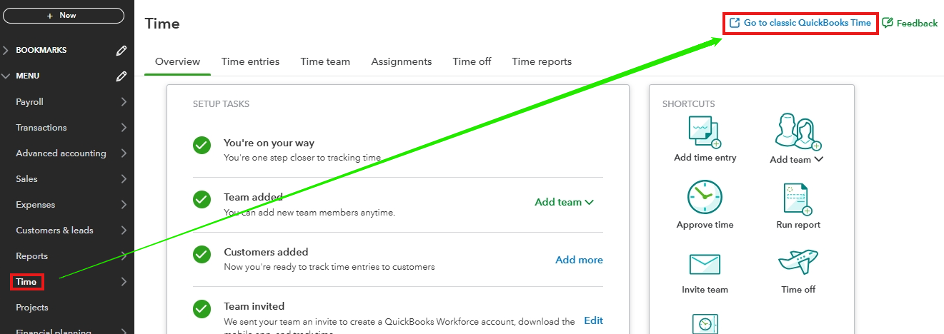 2. Choose Go to classic QuickBooks Time.