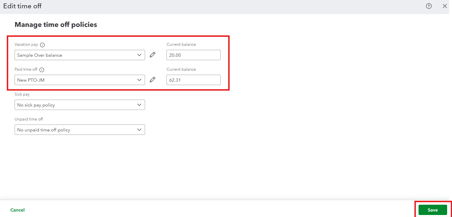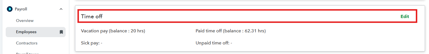 In QuickBooks Online Payroll, you can update your time off pay policies to track the accruals of your employees. Then, ensure the accrual rate and maximum balance settings align with your company policy to avoid an error message. If an error appears, increase the maximum limit in the accrual settings or adjust the employee’s starting balance accordingly.