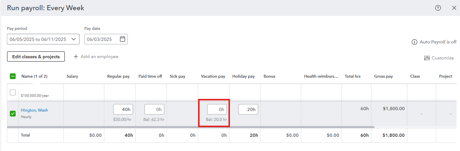 Then, the current balance will show when you run payroll for that employee. To guide you in sending schedules and unscheduled paychecks, see this article: Create and run your payroll.