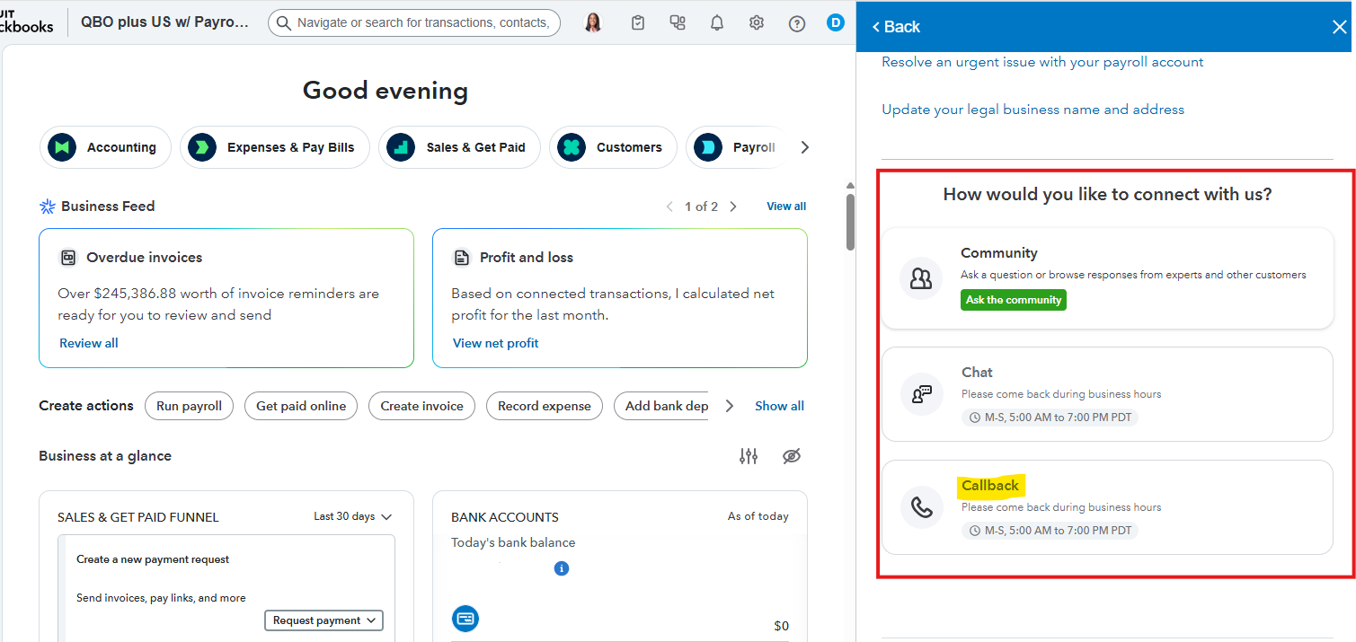 To learn more about our support availability hours, please visit this article: Get help with QuickBooks products and services.