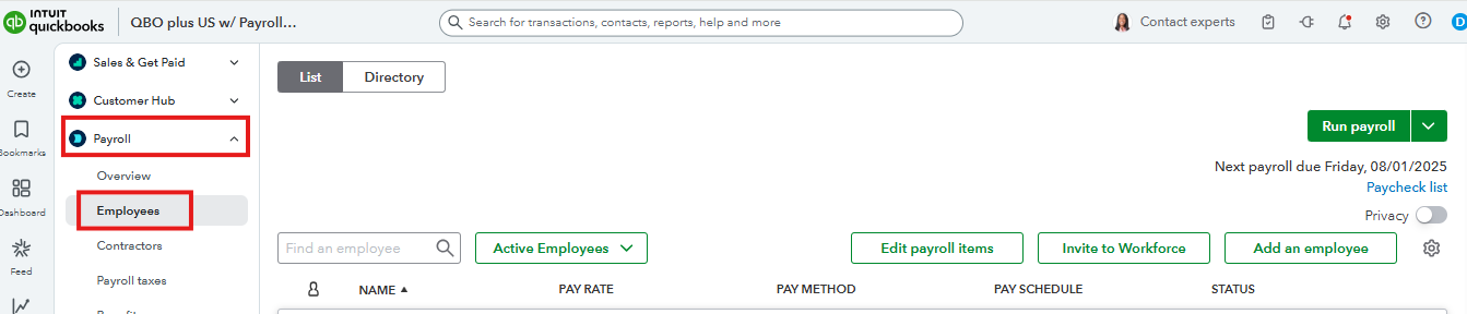 - Go to the Employees tab from the Payroll menu.