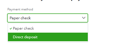 - In the Payment method dropdown, select Direct deposit.