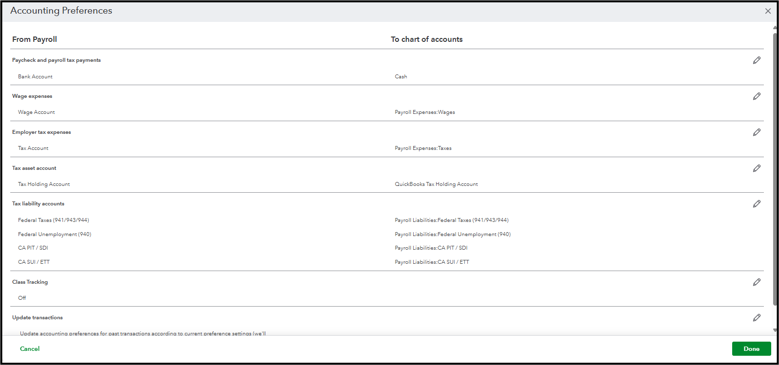 Once complete, the amounts for these items will automatically be transferred to their respective accounts in your Profit and Loss report. Refer to this article if you need more changes to your payroll settings: Change Your Accounting Preferences In QuickBooks Online Payroll.