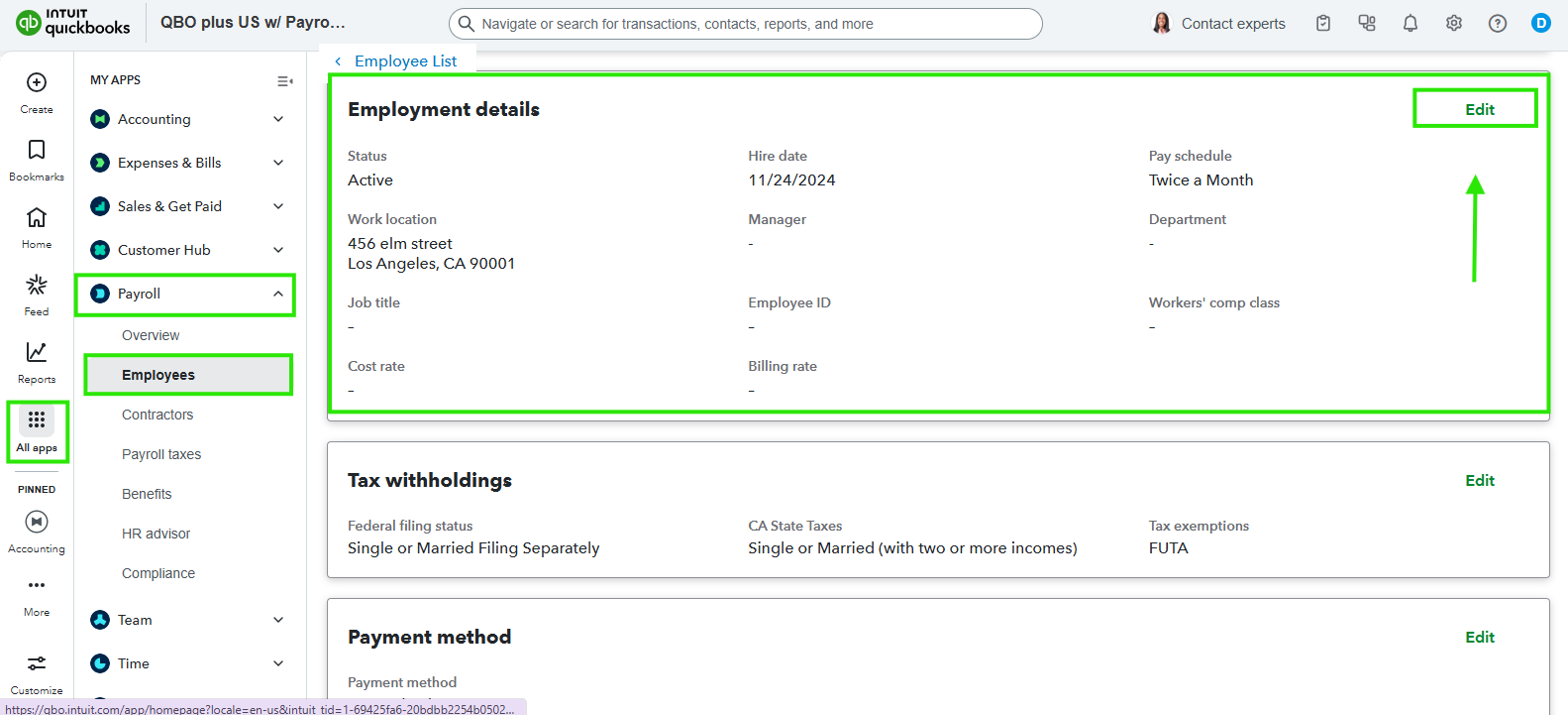 - Go to the Payroll and select Employees.