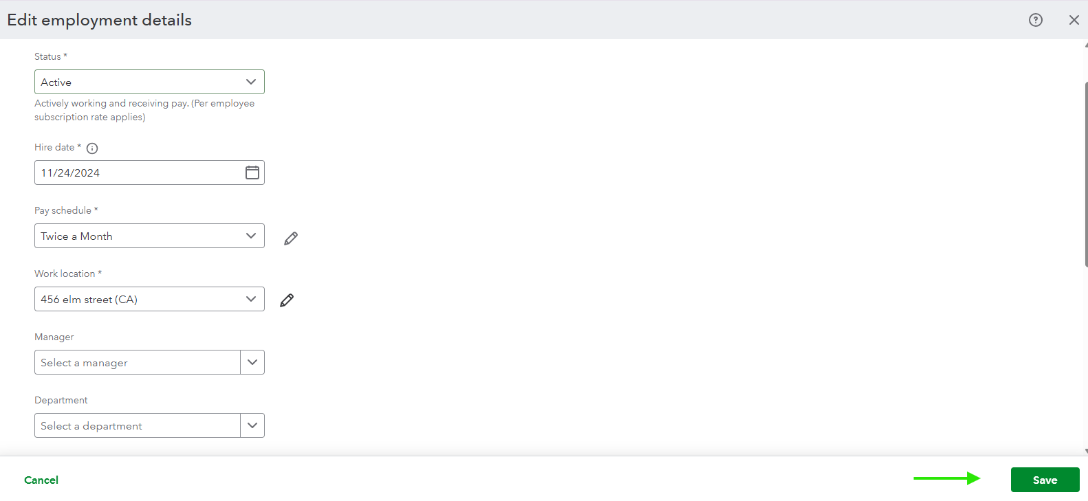 - In the Employment details section, click Edit.