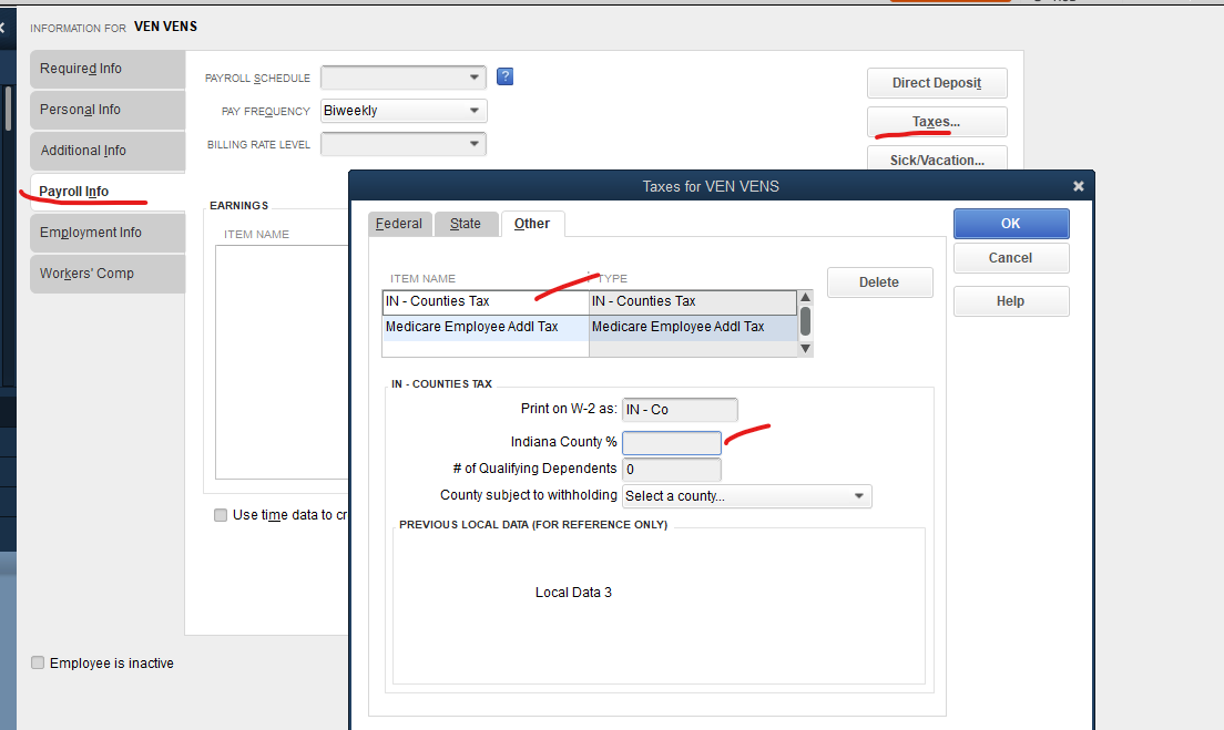 Also, the default county for a new employee setup had a rate change. I can't find where I can change the default. Obviously I can override it in the EE file but I would like to change the default rate (it currently defaults to Allen at 1.48% but the rate s/b 1.59%)