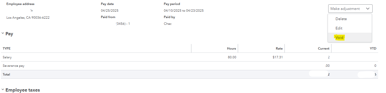 - Choose the paycheck you want to void.