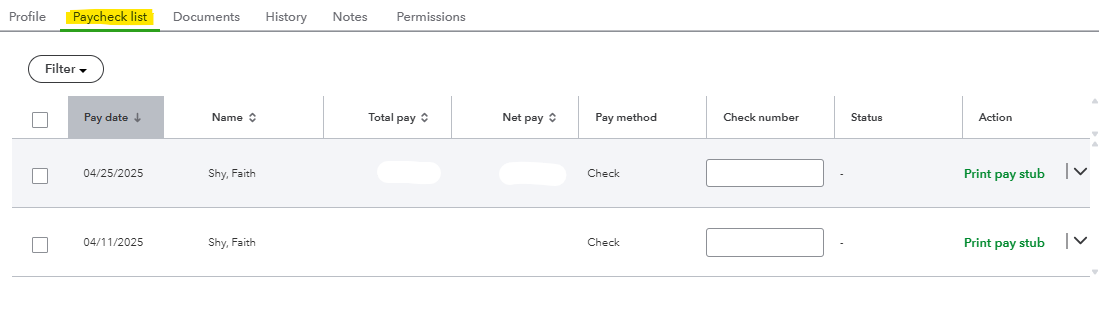 - Go to Employees, then to the Paycheck list section.