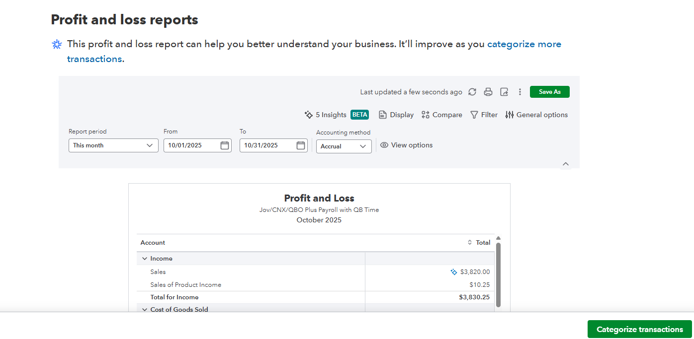 To show proof of income from QuickBooks Online (QBO), you’ll need to generate a Profit and Loss (P&L) report, also called an Income Statement. This report lists your business’s total income and expenses for a set period, showing your net income or loss. Lenders, landlords, and other organizations usually ask for this document to verify your income. Here’s how you can get it: