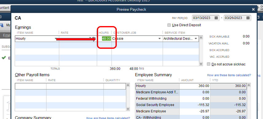 You can read more details about this here: Create Paychecks Based on Timesheet Hours.
