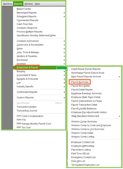 1. Navigate to Reports → Employees & Payroll → Payroll Summary.