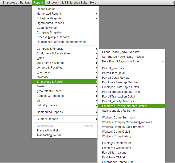 To view the applied pay rate adjustments, you can run the Employee Pay Adjustments History Report. Here’s how: