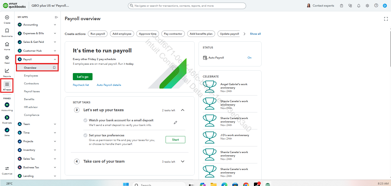 This section allows you to return to the setup and pay history tasks. However, if you've already created paychecks, contact us to make changes to your pay history.