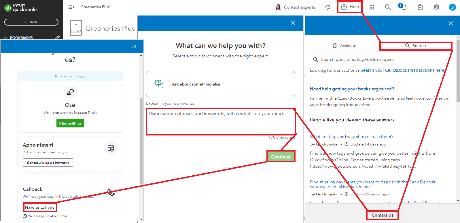 - Open the Search tab and click Contact Us.