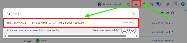 Yes, in QuickBooks Online (QBO), you can find an invoice by its number using the Classic Search or Advanced Transactions Search feature.