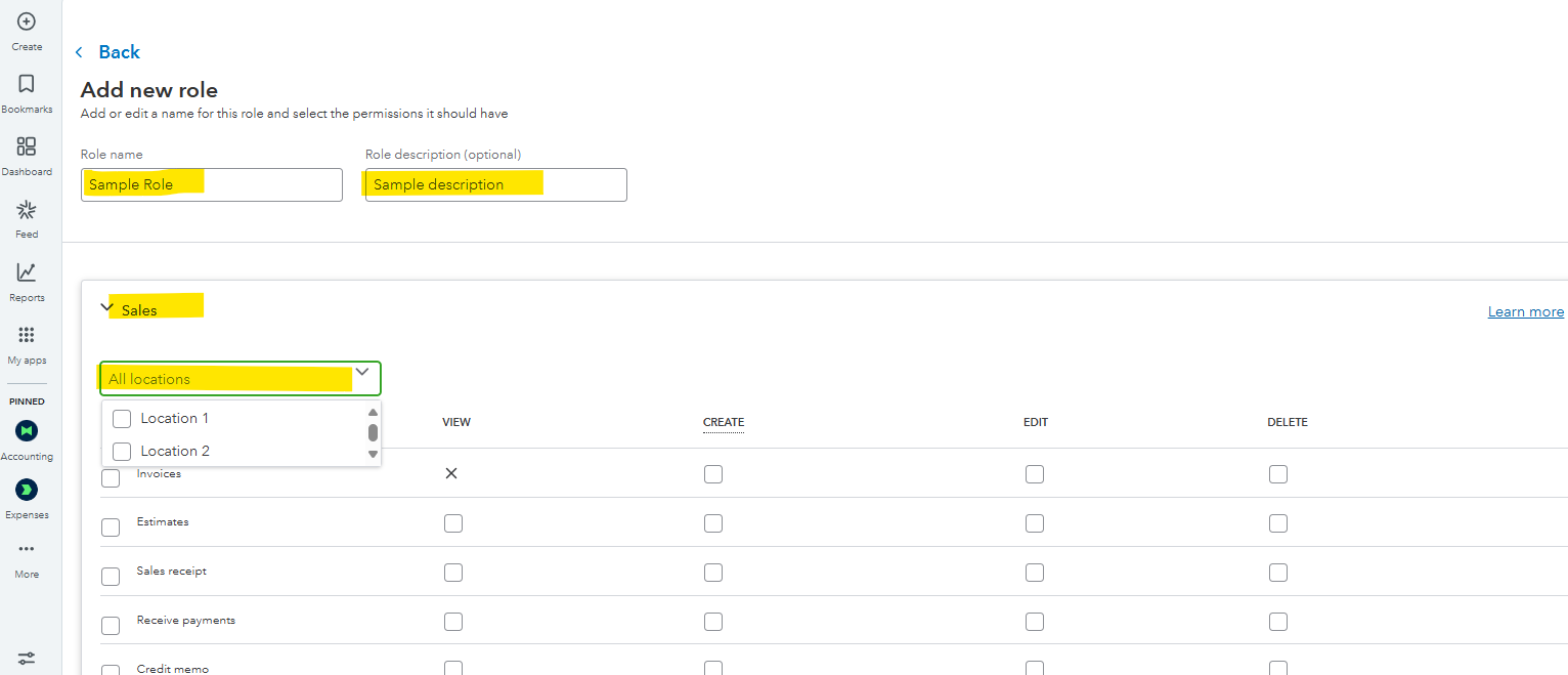 While you can create a role to restrict access by location, it's important to note that this restriction currently applies only to Sales. Expense access cannot be restricted by location at this time.