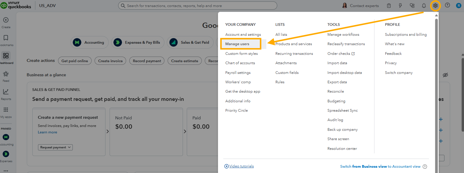 - Go to the Gear icon, then click Manage users.