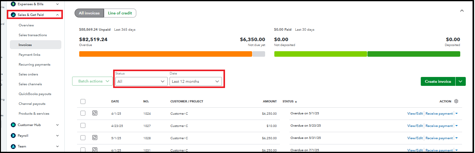 You can also check your invoices in the Sales & Get Paid tab. Ensure to update the status and date filters to find all entries.