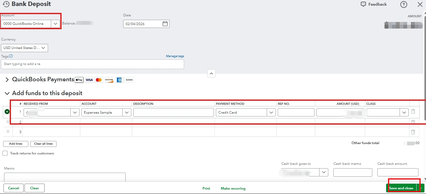 Once done, go to the Bank transactions tab, find the bank feed transaction, and match it to the updated deposit. This ensures the amount aligns with your bank feed and properly records the fee.