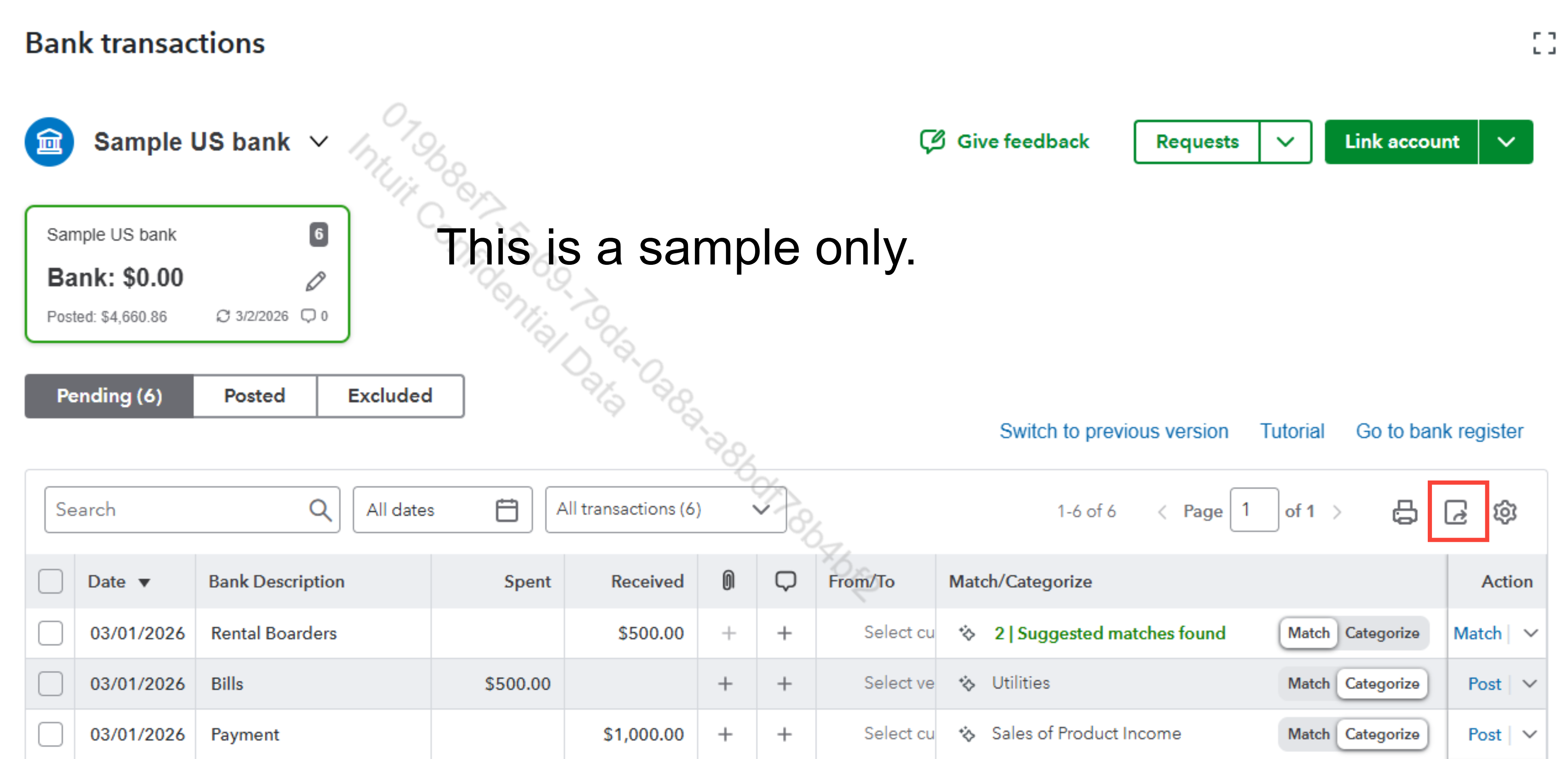 Hello there, Kyle. Can I ask which specific area you are trying to export from? If you're trying to export transactions from your banking feed, you can do so by going to Bank Transactions, selecting the specific bank account tile, and then looking for the Export to Excel icon, located on the right side of your screen, beside the Settings icon.