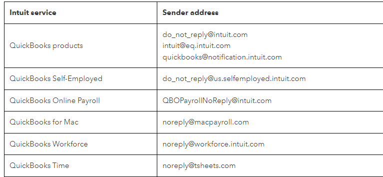 Here is the list of the legitimate emails used by Intuit in sending you messages.