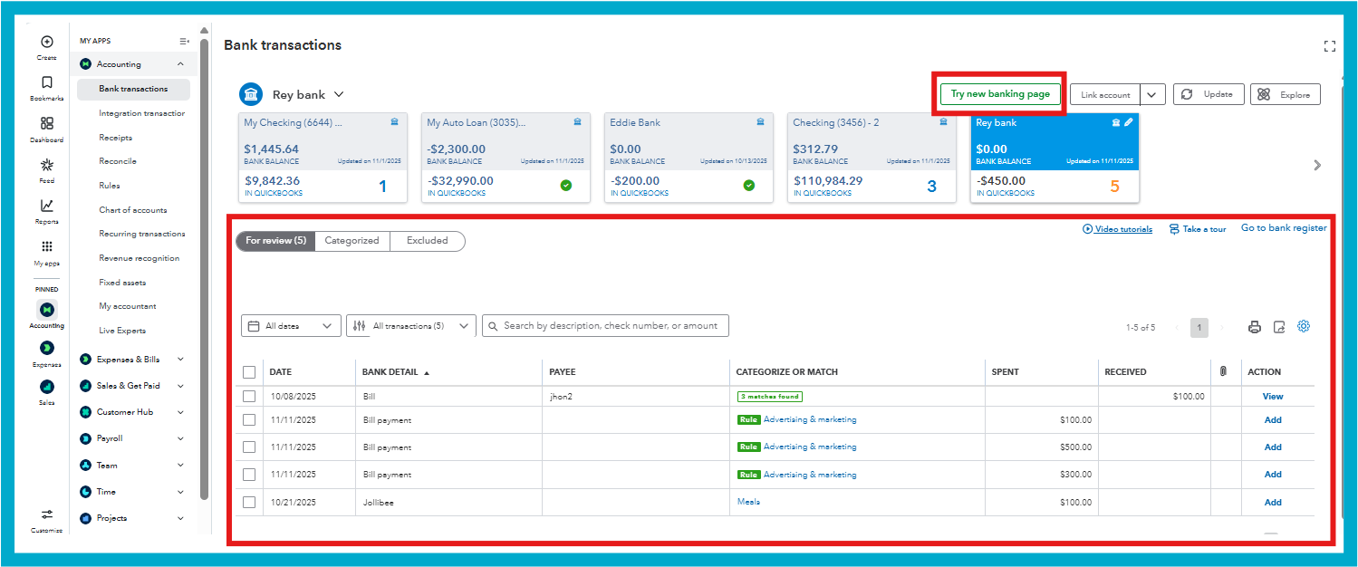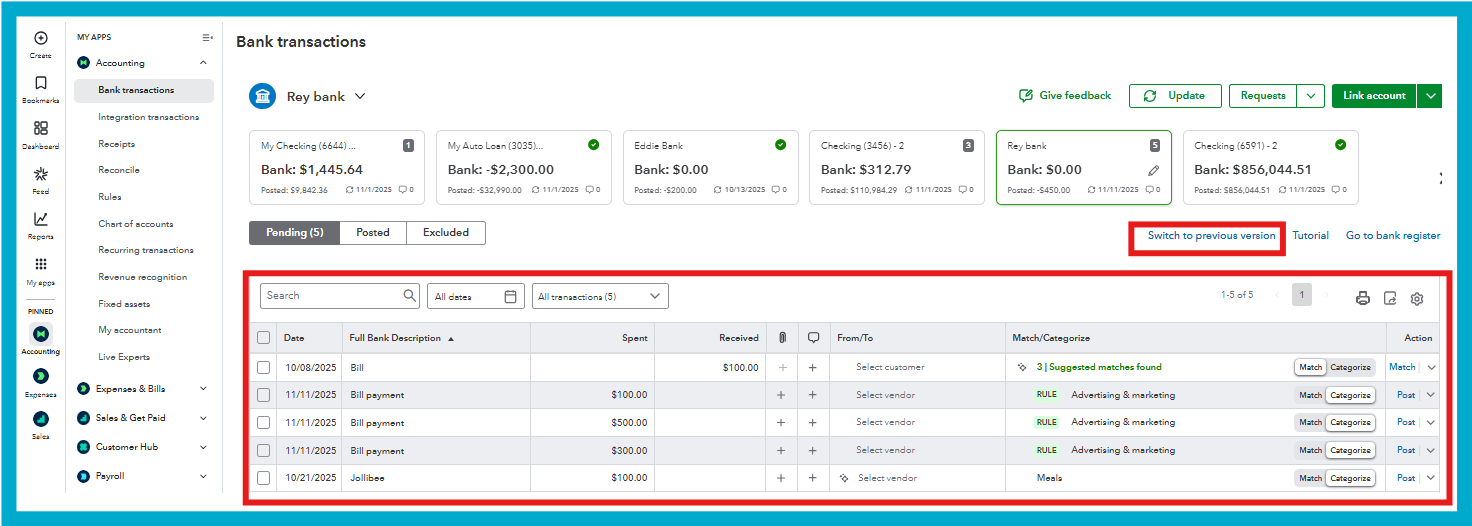 If you prefer to disable AI-powered categorization, select Switch to previous version on the Banking page (you can also switch it back if you wish).