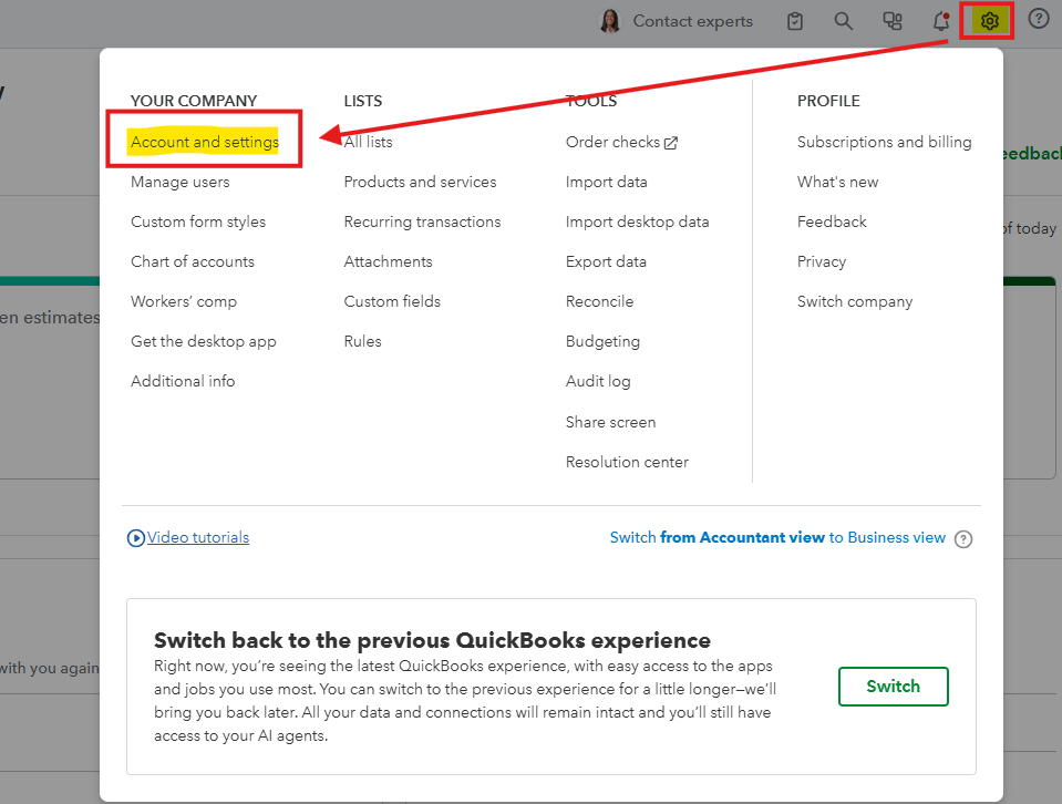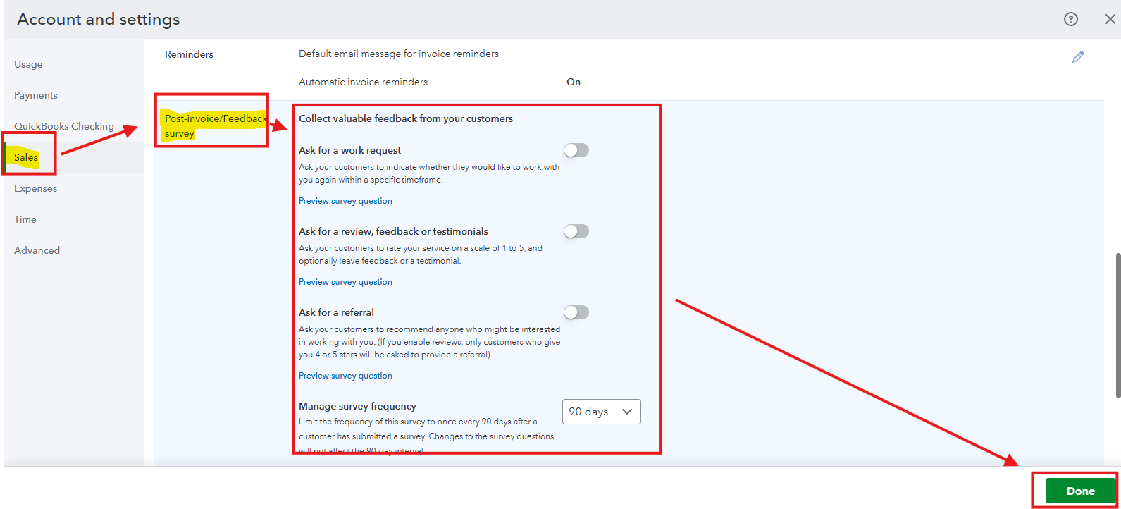Before we begin, I’d like to know if the feedback pop-up you’ve mentioned is the Post-Invoice Surveys in QuickBooks Online. If this is what you’re referring to, we can turn this off in the Accounts and Settings in your QuickBooks. Here’s how: