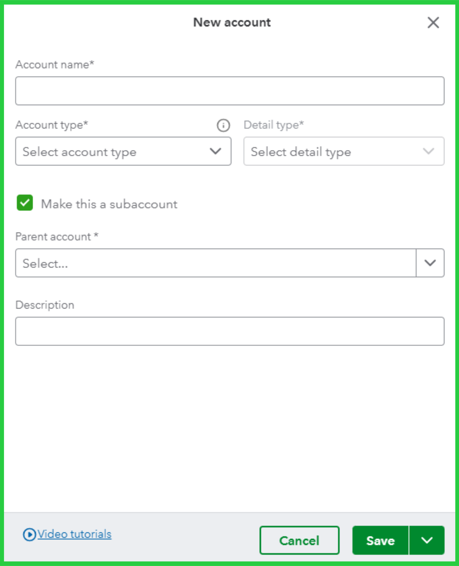 - Tick the box for Make this a subaccount, and select its corresponding Parent account from the dropdown menu.