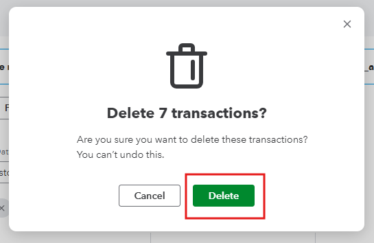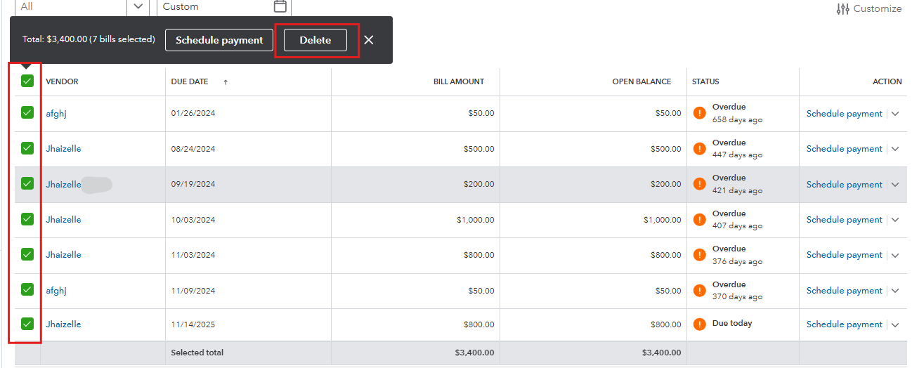 4. Check the Checkbox for all the bills you want to delete, then select Delete.