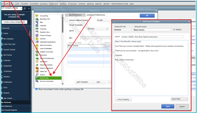 Hi, @erickson101011. I understand the frustration of a recent update resetting your professional layout to a centered format. In QuickBooks Desktop (QBDT), editing an email template (like the one used for Invoices or Estimates) is done through the Preferences menu. It's somewhat hidden, so here's how to find it: