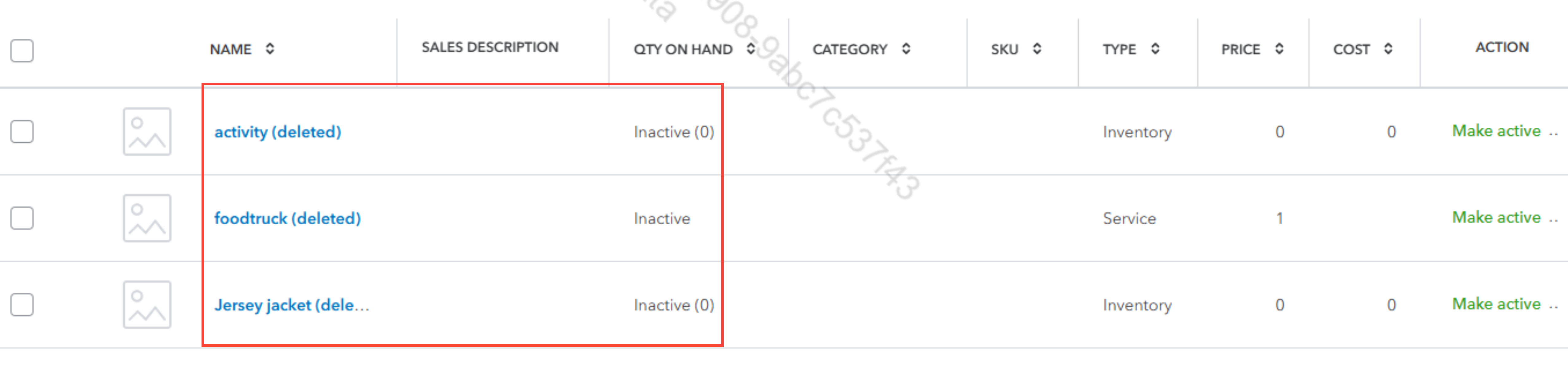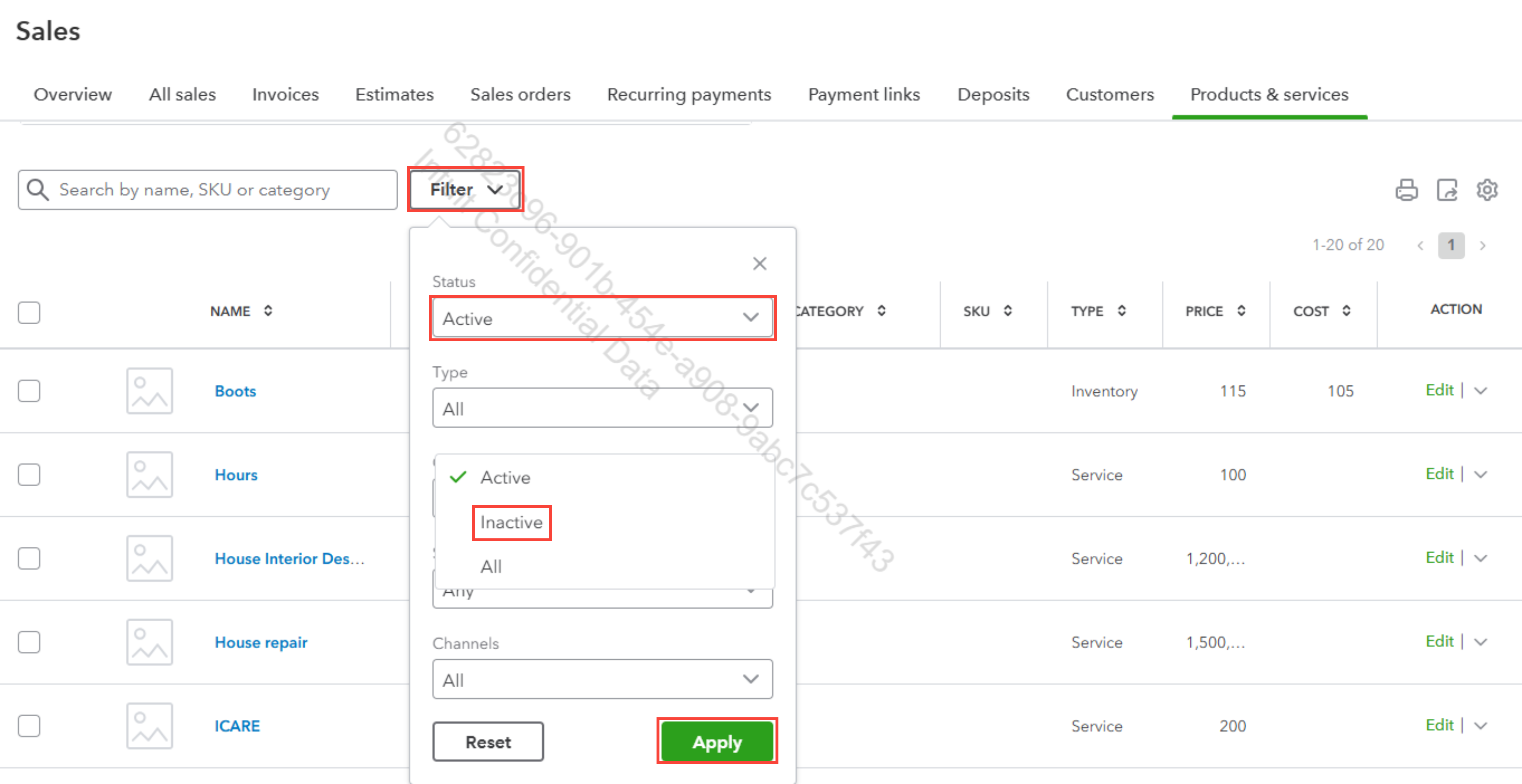 - Once you've completed this, click Apply to display only the items you’ve marked as inactive.