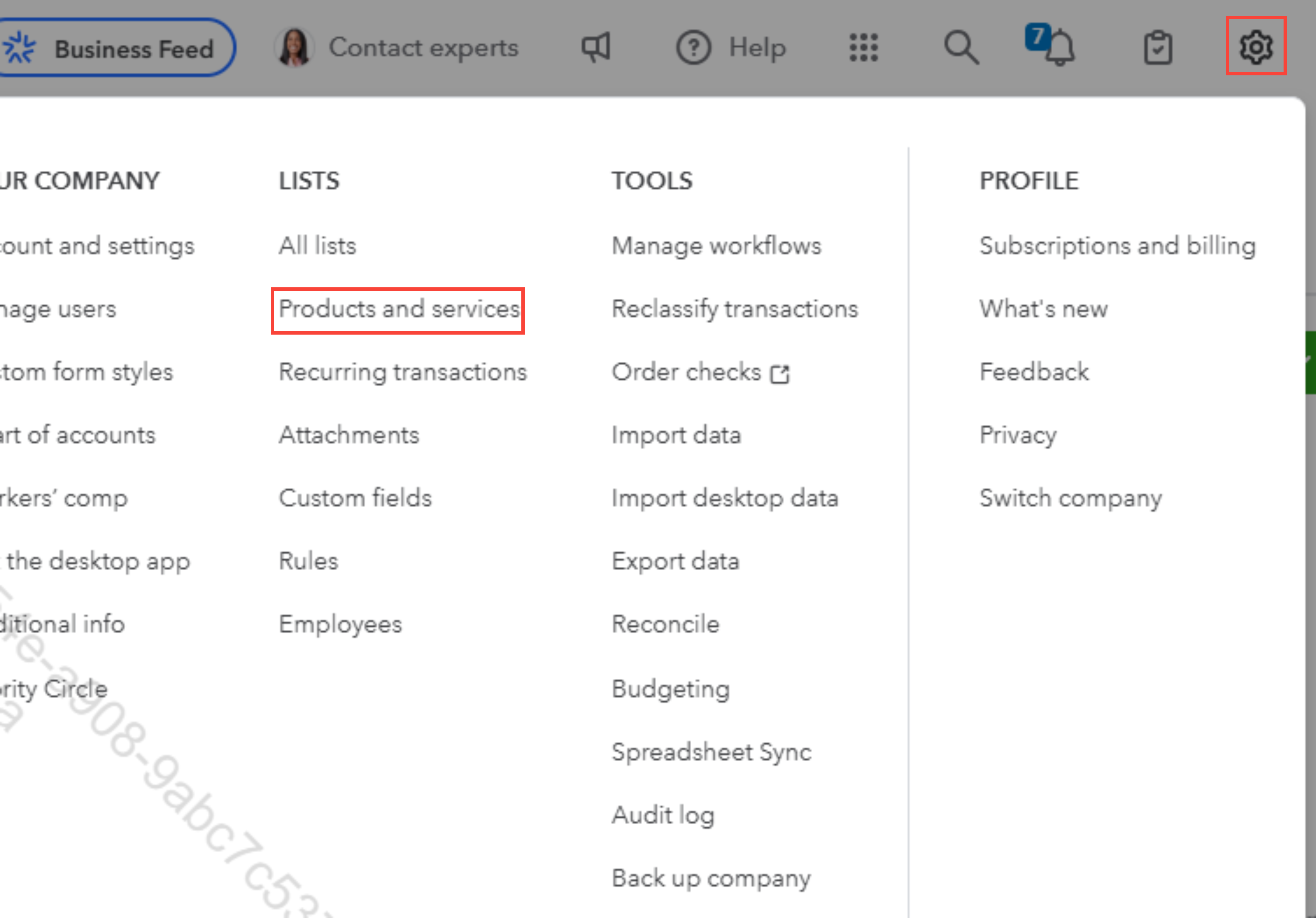 - Navigate to the Settings ⚙, then Products & services.