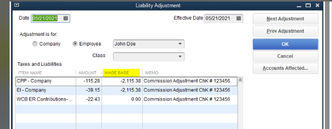 Now onto the reimbursement of the employee. Since you setup a company contribution it setup a payable, so now do we get rid of said payable? With the reimbursement ladies and gentlemen and aliens from all types of planets. So direct your reimbursement to the payroll liabilities account so it will cancel it out, that is what you want it to do anyway. It will debit the payable and credit the checking account just like it should. All the little green men can get their reimbursements so they can UFO home in peace.