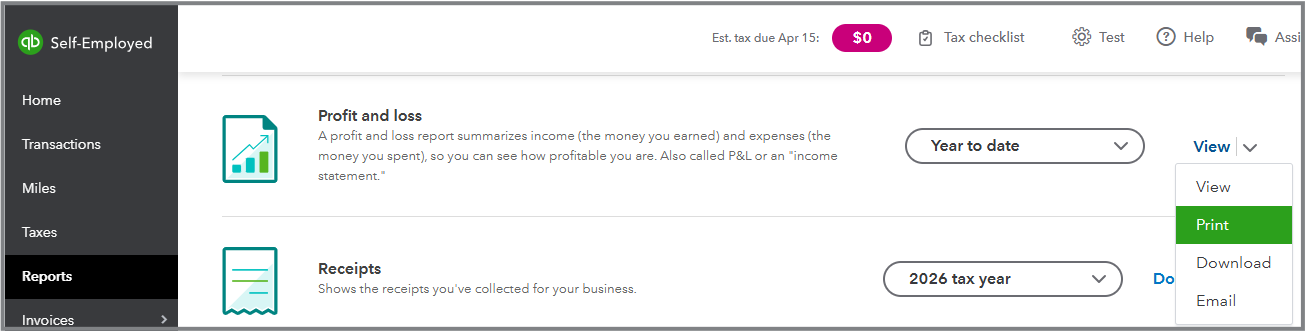 While you can generate reports, such as the Profit and loss, to review yearly totals by category and Print the report as a PDF, it’s important to note that this record doesn’t include detailed transaction-level entries.
