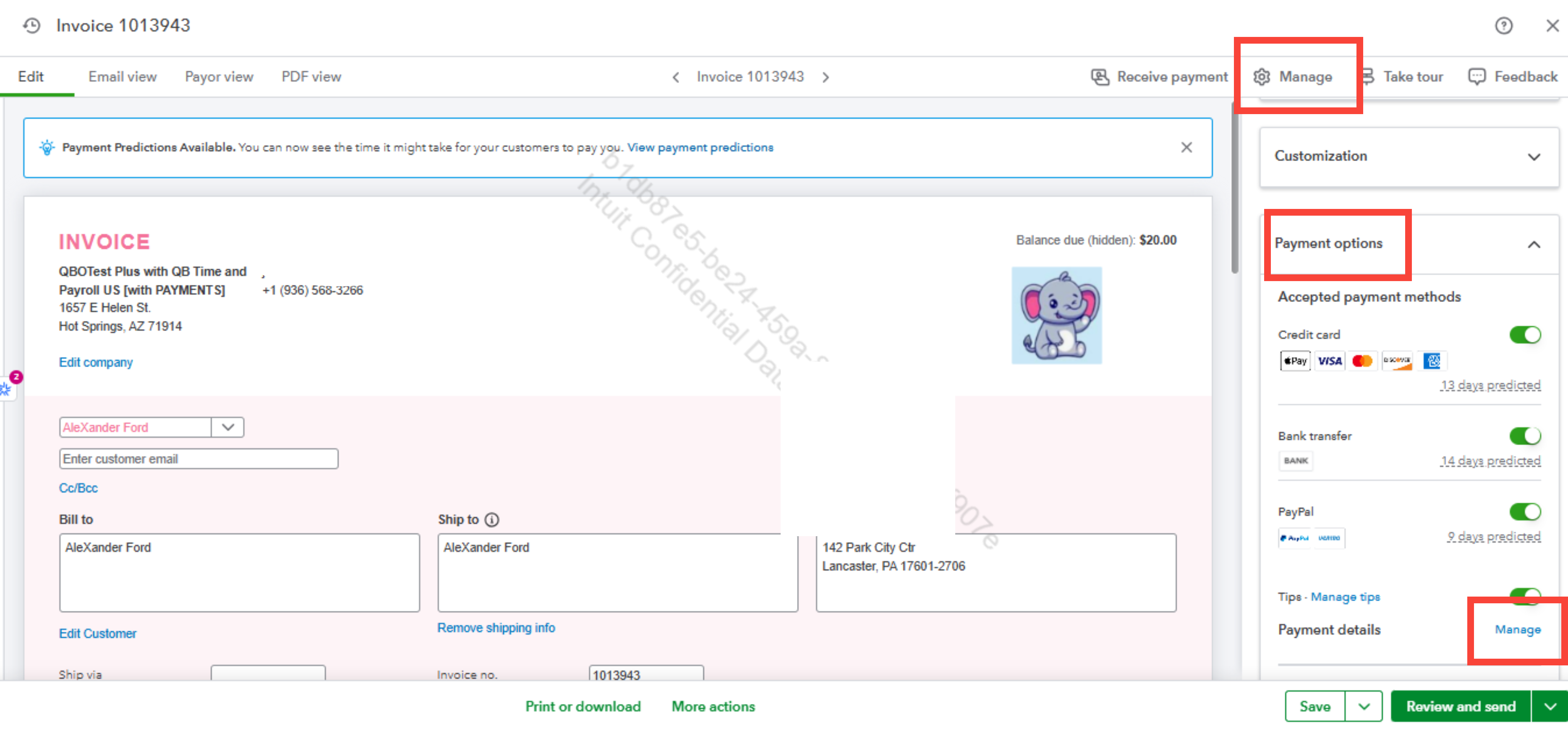 - Click on the Manage option next to Receive payment.