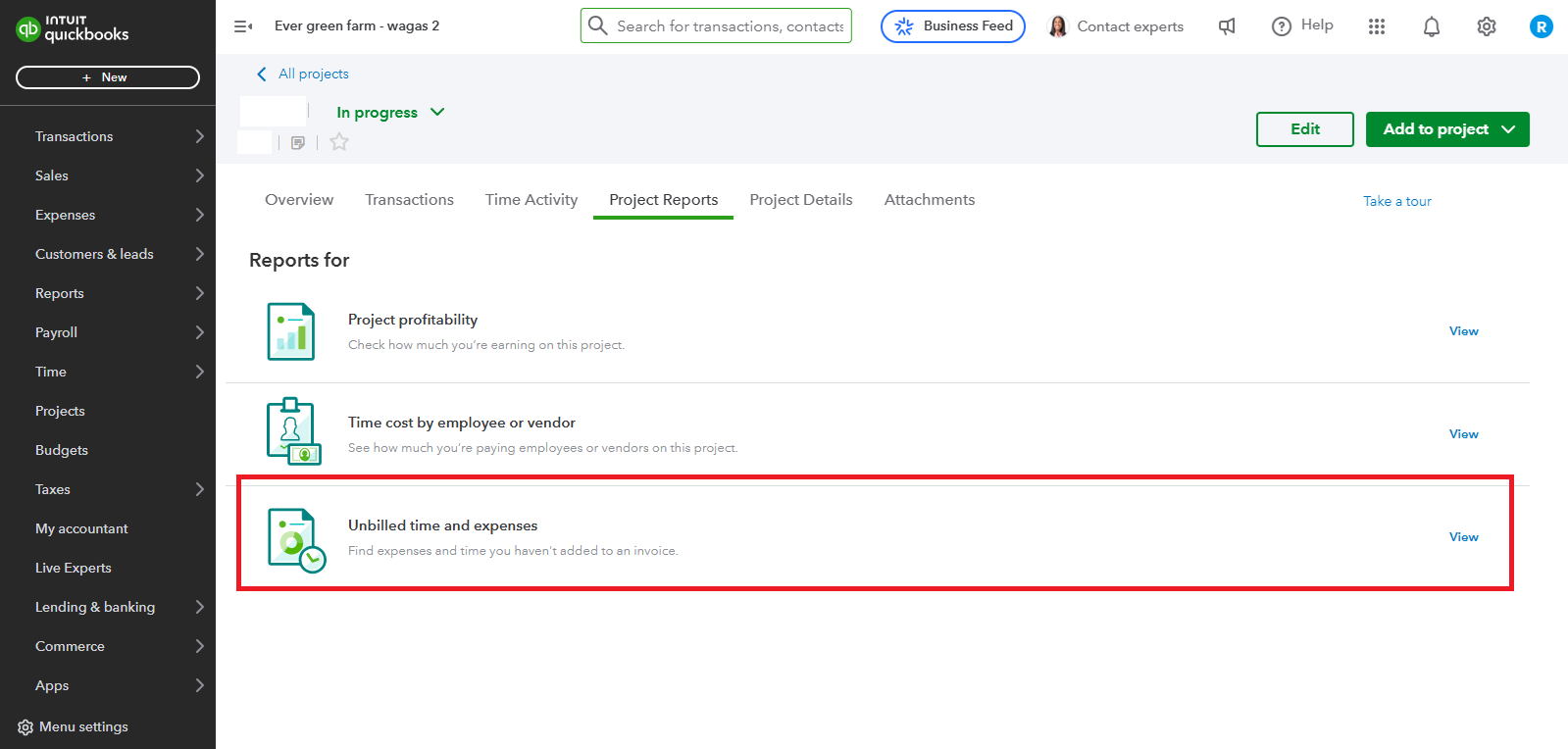 If the project is unbilled, you can also run the report directly from the Projects tab: