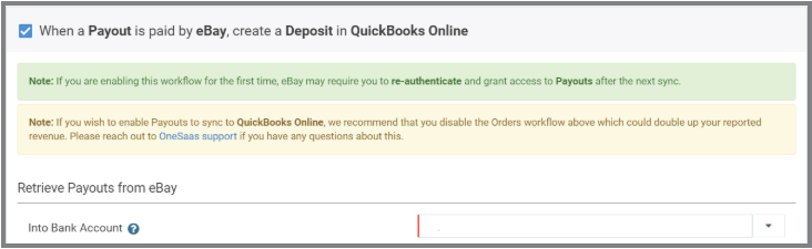 You might also have to re-authenticate eBay and grant access to Payouts if this is your first time enabling this workflow.