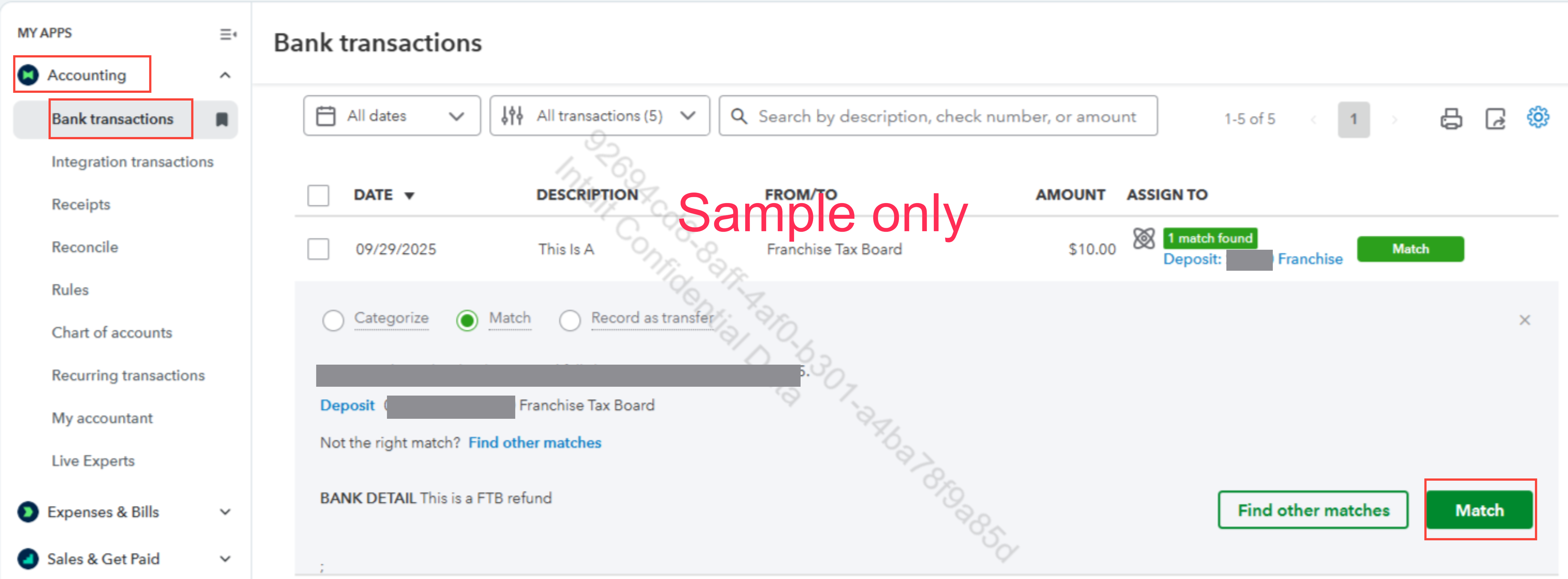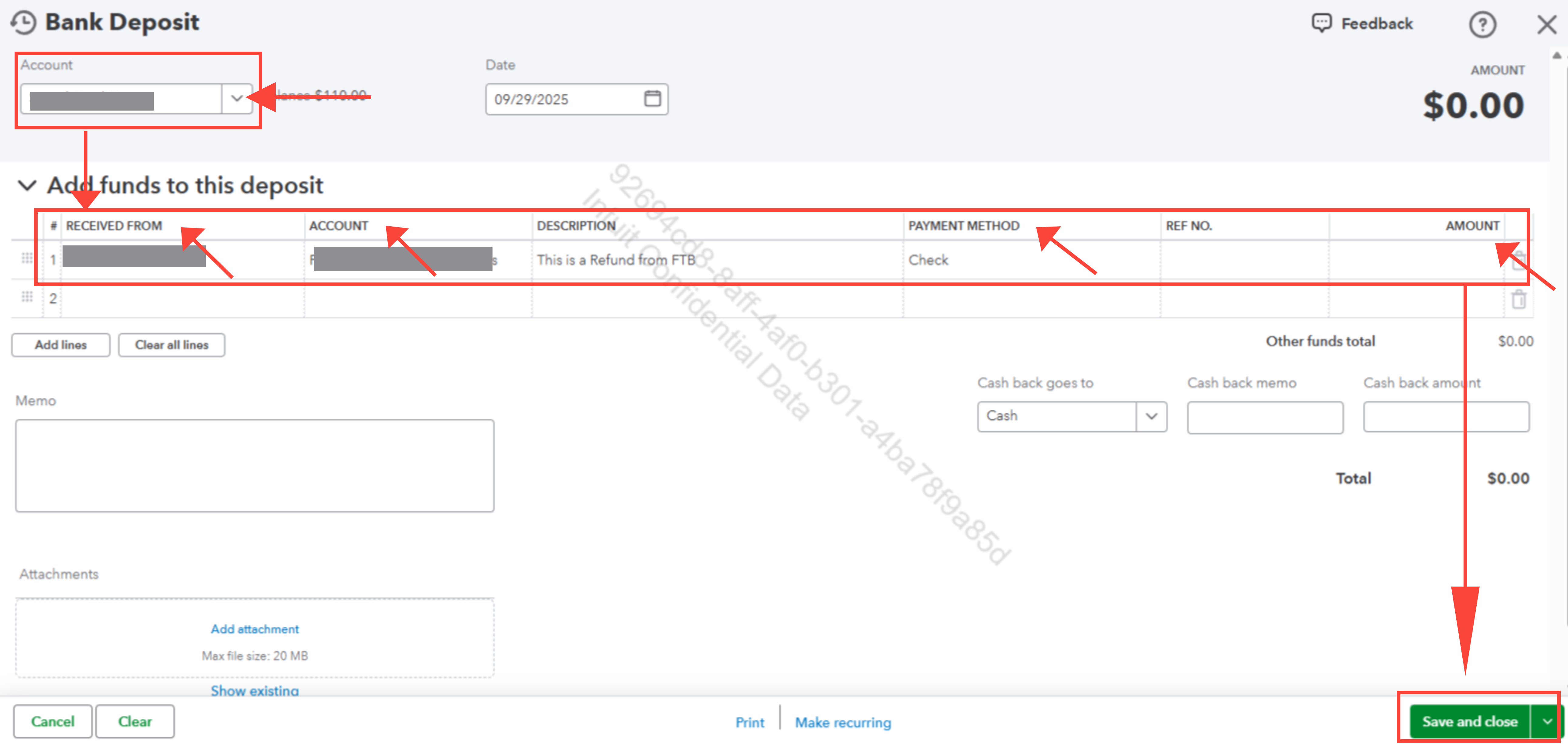 Here’s how to record the refund as a bank deposit: